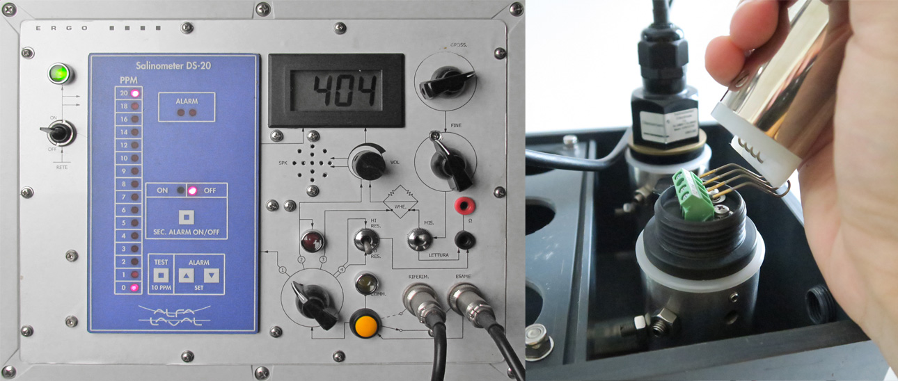 Le sonde per salinometro vengono posizionate nella vasca contenente acqua demineralizzata in scorrimento continuo. Ogni singola sonda viene controllata e testata al fine di consegnare al cliente pezzi perfettamente funzionanti. I valori letti da ogni sonda mediante apposito connettore vengono confrontati con quelli rilevati dalla sonda campione.